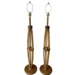SOLD Vintage Pair Mid Century Modern Rattan Floor Lamps Newly Wired Brass Hardware