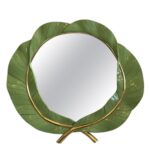 SOLD Large Vintage Green Lacquered & Gold Leaf Banana Leaves Tropical Wall Mirror