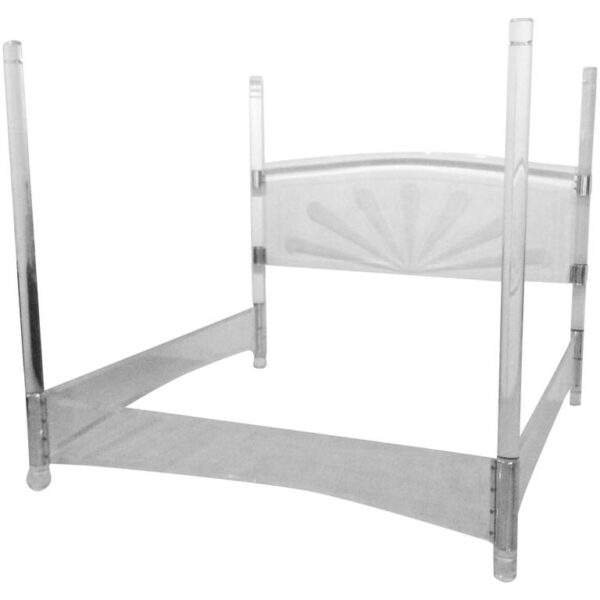 SOLD Lucite and Chrome Four Post Canopy Bed King-Size Vintage Headboard Mid-Century