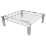 Amazing vintage Lucite with glass top coffee cocktail table, column style legs that are thick and chunky! Lucite is in impeccable condition! The perfect cocktail table to compliment, not compete, with any décor!