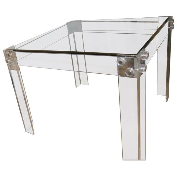 SOLD Lucite Dining Game Table Peg Chrome Vintage Square Charles Hollis Jones Style