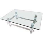 Amazing signed Les Prismatiques vintage, rare, Lucite faux bamboo coffee cocktail table with glass top. Hollywood Regency, Palm Beach, Mid-Century Modern piece.