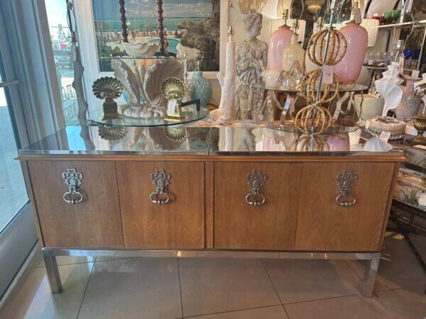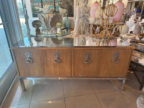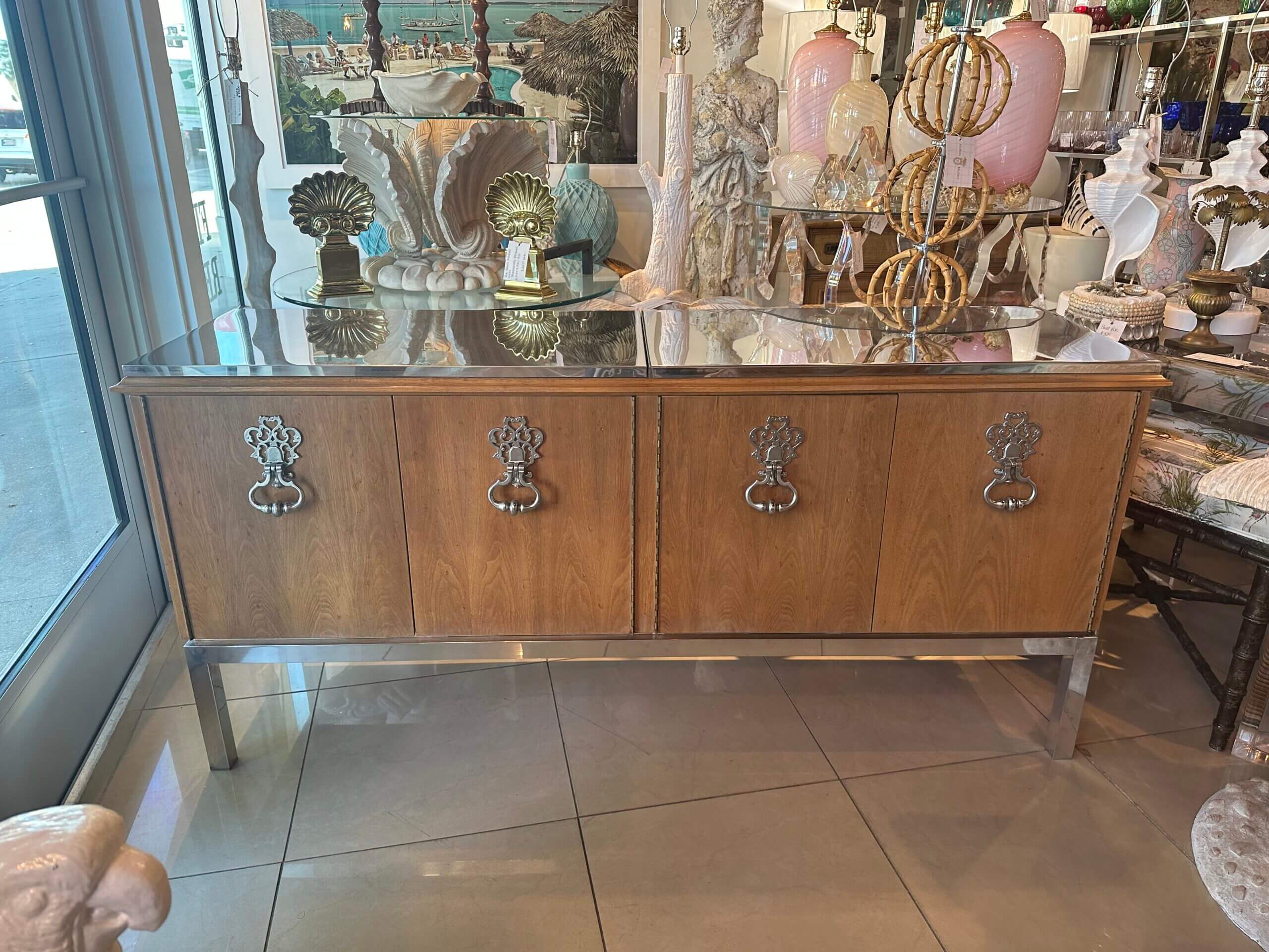 SOLD Vintage 1975 Mastercraft Mahogany Wood Chrome Credenza Cabinet Buffet Sideboard