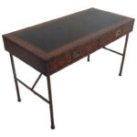 SOLD Mastercraft Brass Vintage Burl Wood Faux Bamboo Desk Campaign Hollywood Regency