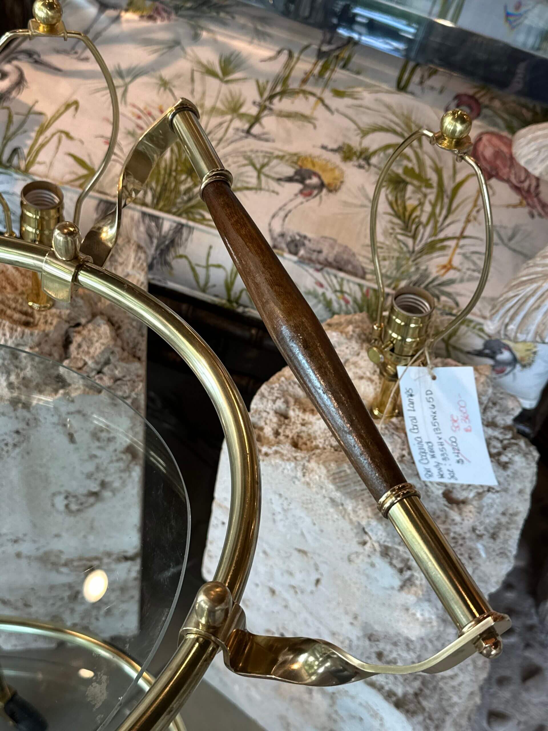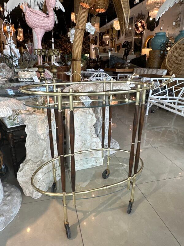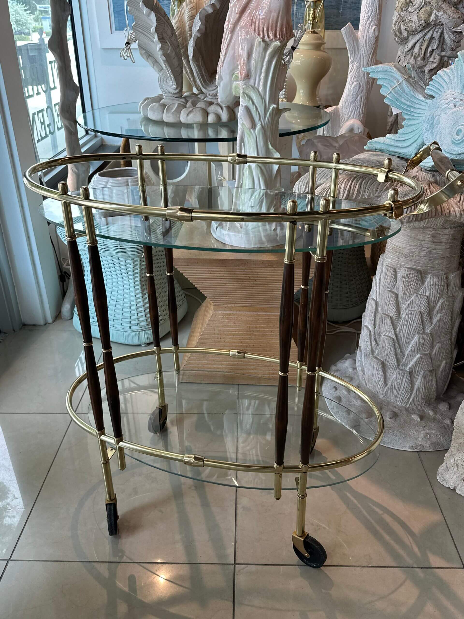 SOLD Vintage Mid Century Modern Italian Oval Walnut Wood & Brass Bar Cart