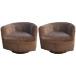SOLD Milo Baughman Pair of Thayer Coggin Swivel Chairs Walnut Base Tub Barrel Arm