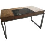 Lovely vintage pencil reed bamboo desk with chrome base. Two drawers. Some minor scratches on the one side chrome, pictured.