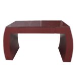 Lovely vintage Hollywood Palm Beach Regency desk, console table in the manner of Karl Springer. Grasscloth with ming legs. Glass top included. Original vintage finish with a few scuffs to paint. No damage to grass cloth. Additional size info. Top of desk is 42.50 long, widest length where the legs flare is 54. Seat height, under drawer, 24.25 tall.