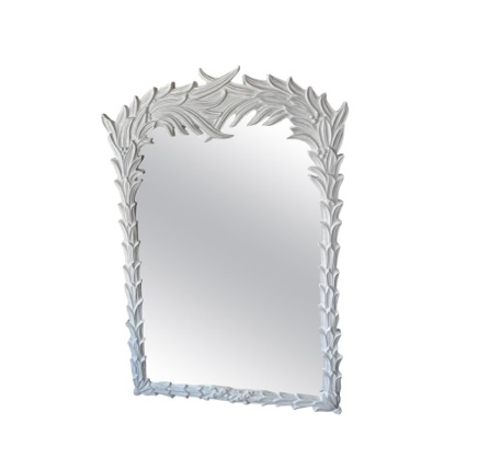 SOLD Vintage White Lacquered Serge Roche Style Palm Frond Leaf Leaves Wall Mirror