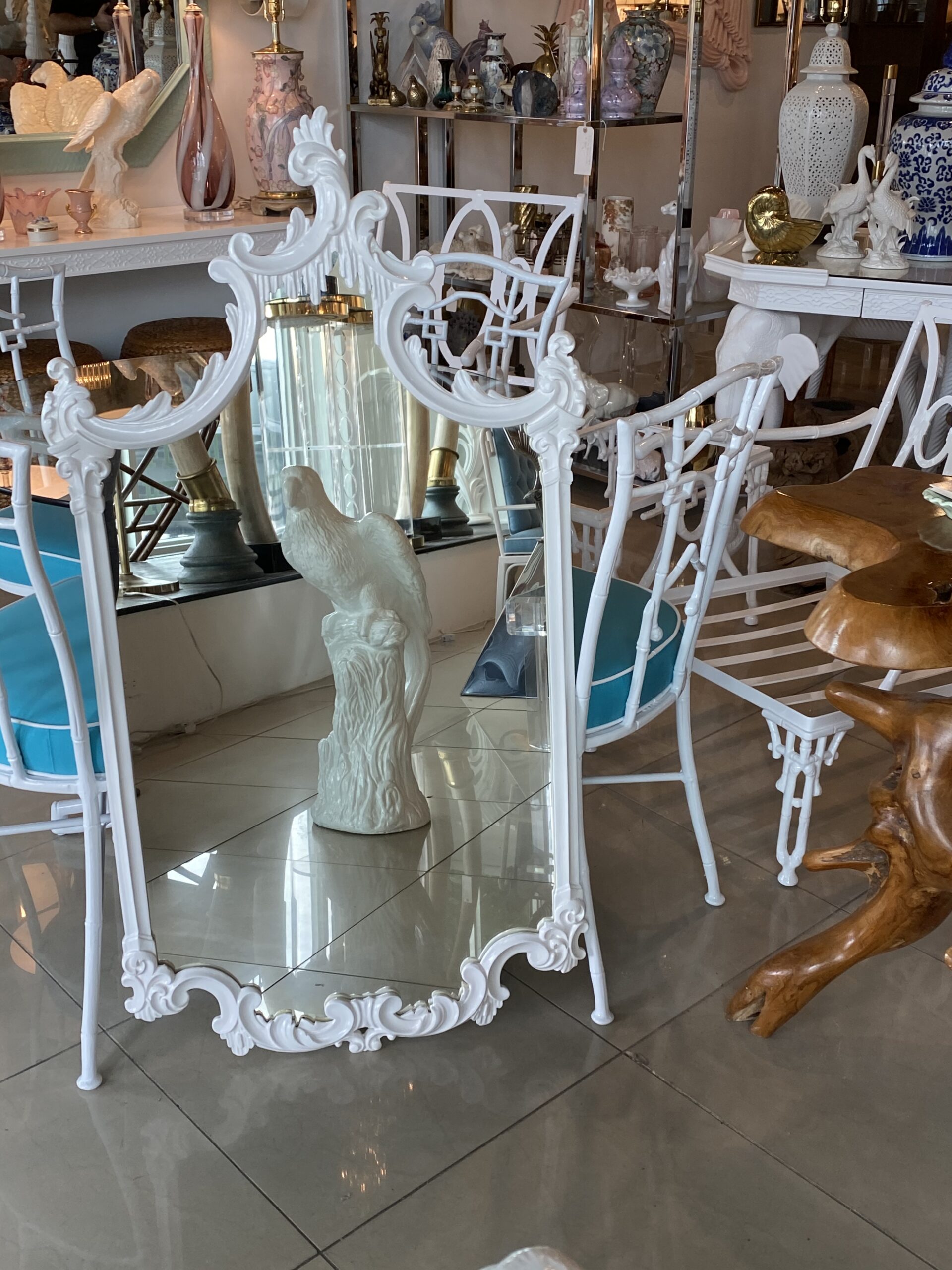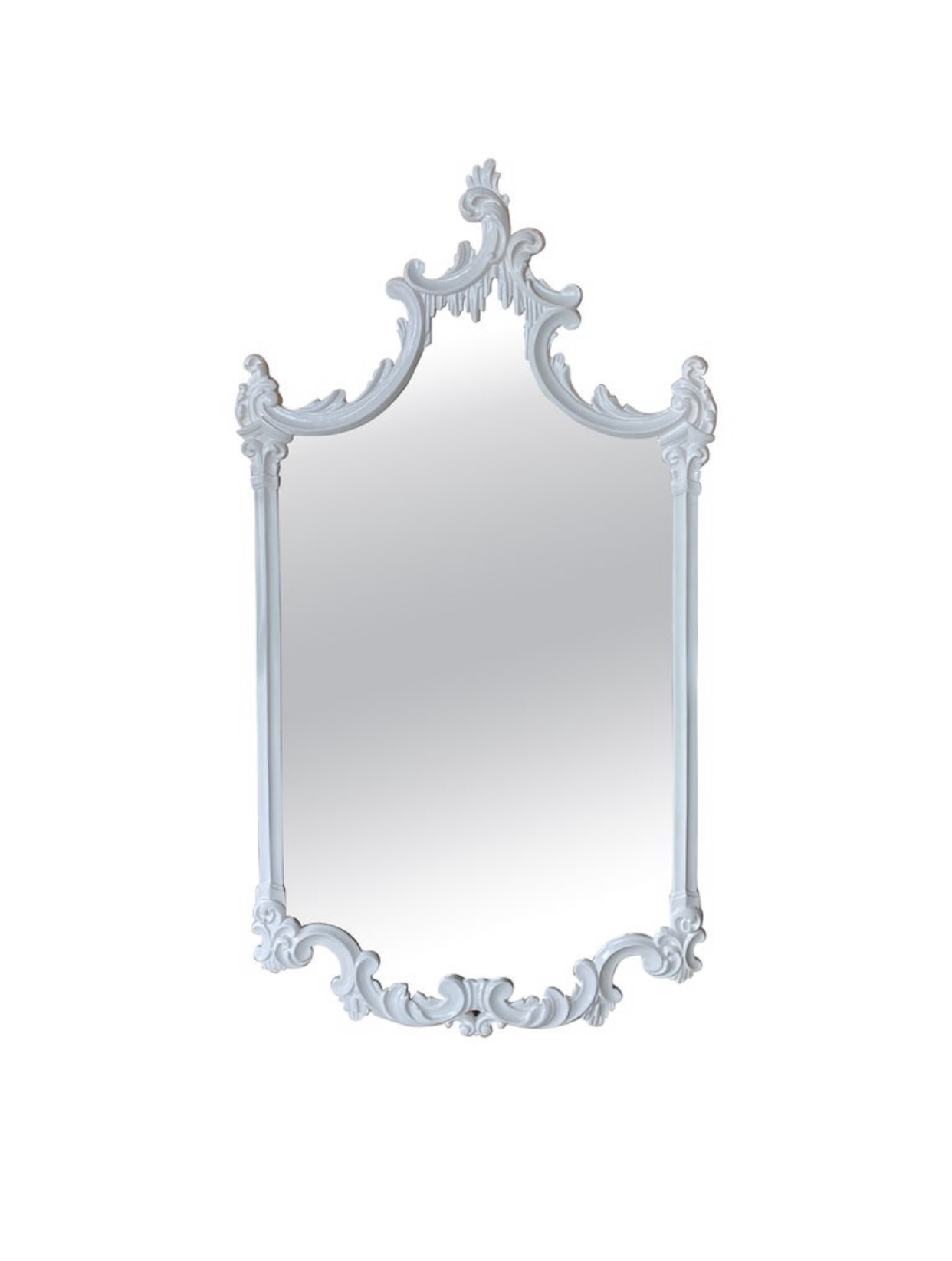 SOLD Vintage Wood White Lacquered Ornate Chinoiserie Pagoda Wall Mirror