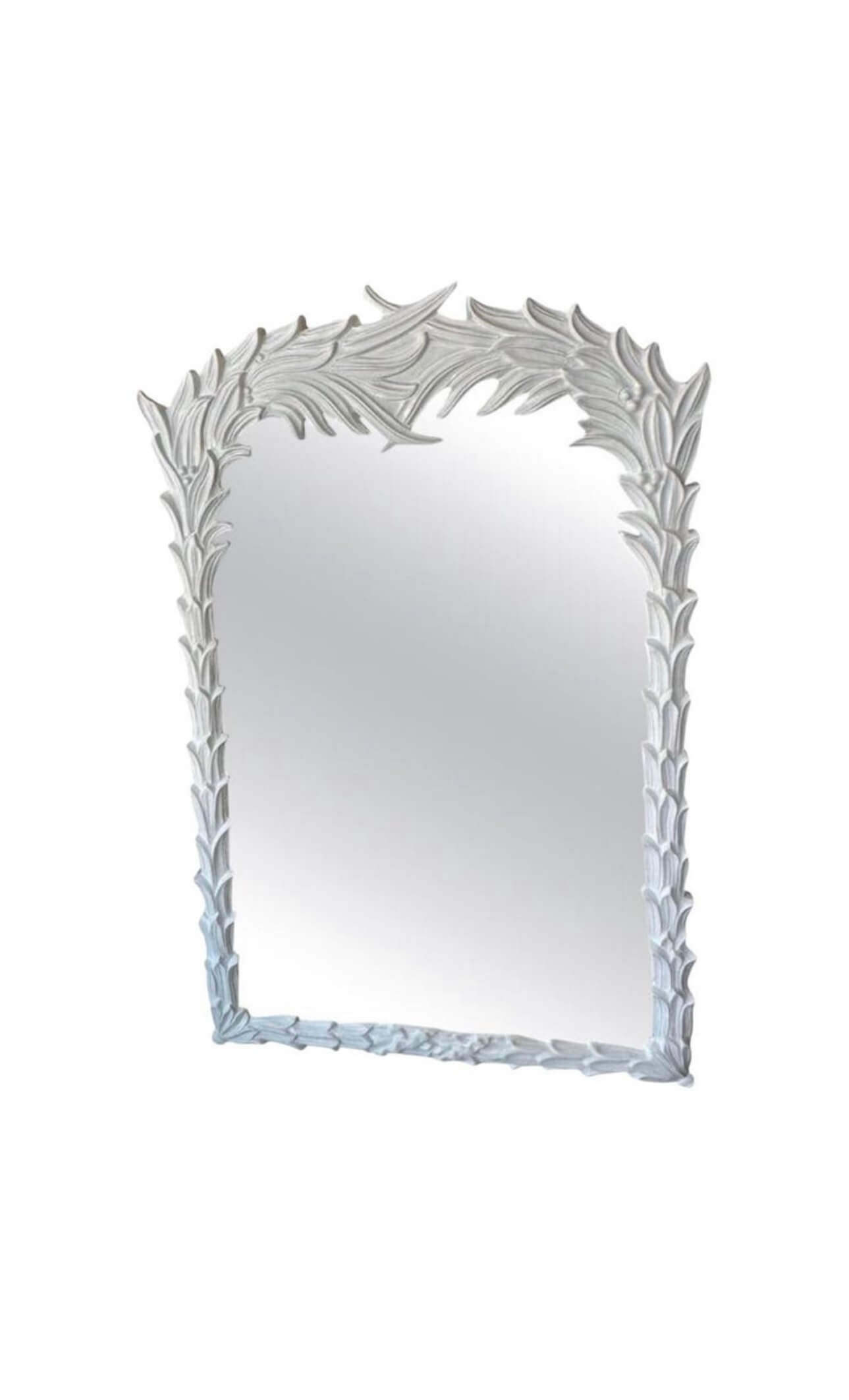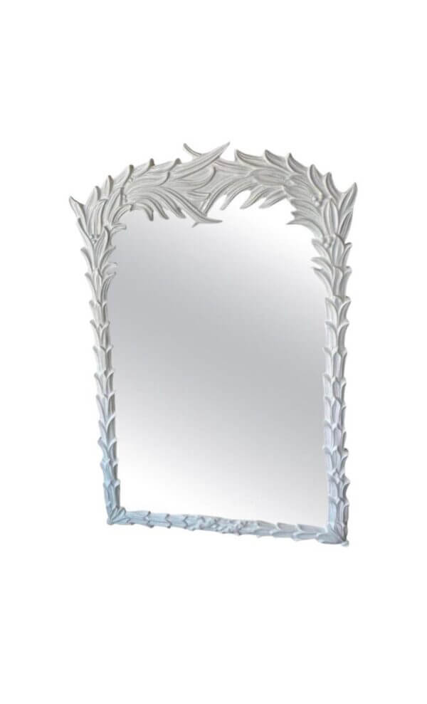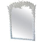 SOLD Vintage White Lacquered Serge Roche Style Palm Frond Leaf Leaves Wall Mirror