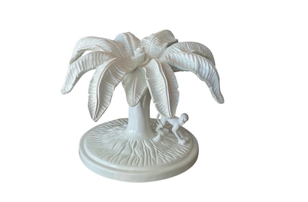 SOLD Vintage Tropical Lacquered White Monkey Palm Tree Leaf Coffee Cocktail Table