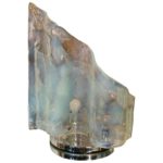 SOLD Murano Mazzega Vintage Monumental Blue Opaline Table Lamp Glass Chrome Wave