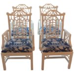SOLD Pair Pagoda Arm Dining Chairs Lacquered American of Martinsville Chinese Chippendale