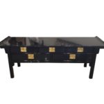 SOLD Pagoda Console Table by Century Newly Lacquered Navy Blue Brass Pulls