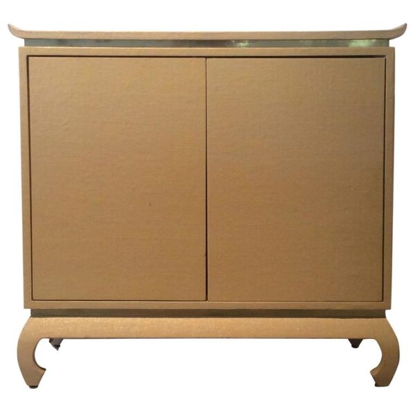 SOLD Pagoda Grasscloth Wrapped Linen Brass Vintage Trim Cabinet Chest Dresser Console