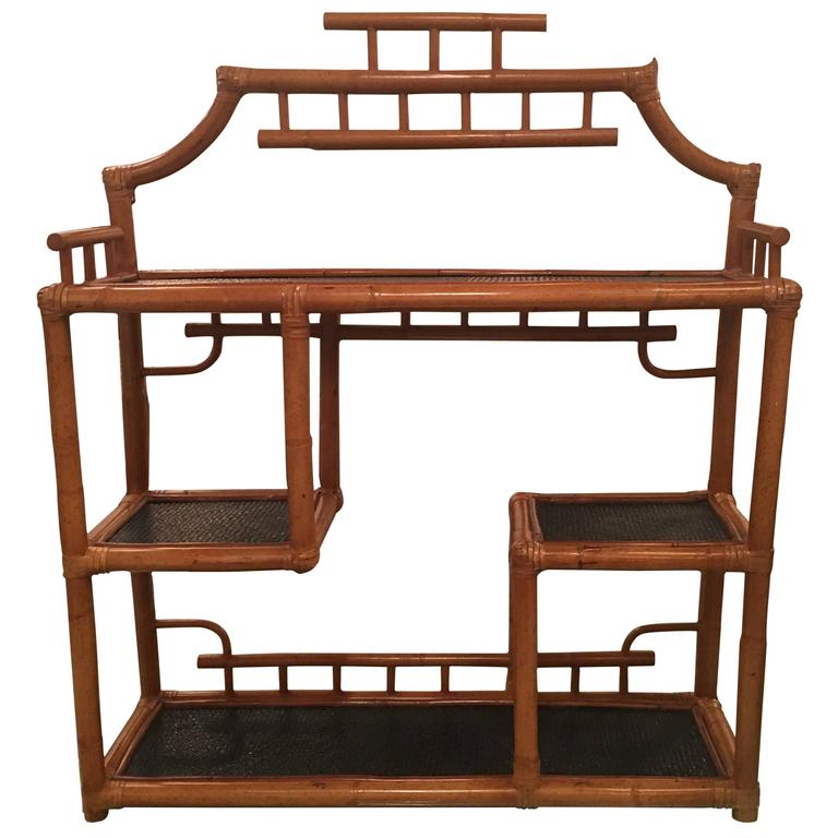 SOLD Pagoda Rattan Bamboo Wall or Floor Shelf Shelves Etagere Tropical Palm Beach