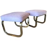 SOLD Pair of Brass and Pink Velvet Stools Benches Ottomans Hollywood Regency