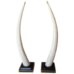 Lovely vintage pair of Maitland-Smith (tagged underneath) (pictured) Tesselated stone faux elephant tusks with brass tops and bases. Brass was left as is with patina however it can be polished up to be shiny. Great Hollywood Regency, Mid-Century Modern piece!