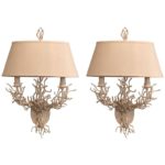 SOLD Pair of Metal Coral Wall Light Sconces Palm Beach Oversized