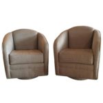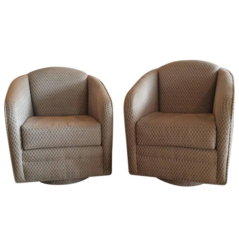 SOLD Pair of Swivel Platform Club, Lounge Barrel Armchairs Hollywood Regency
