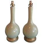 SOLD Pair of Table Lamps Green Celadon Crackled Glazed Porcelain Vintage Chinoiserie
