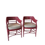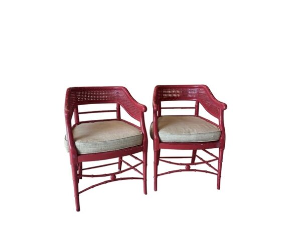 SOLD Pair of Vintage Baker Faux Bamboo Barrel Arm Chairs