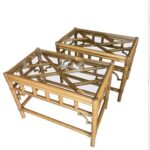 SOLD Pair of Vintage Chinese Chippendale Rattan Side Glass Top End Tables