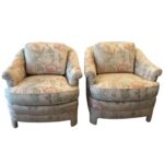 Lovely pair of Vintage armchairs Arm Chairs, Club, Lounge with original upholstery. Lovely tropical pastel color birds With a shimmery vibe.