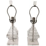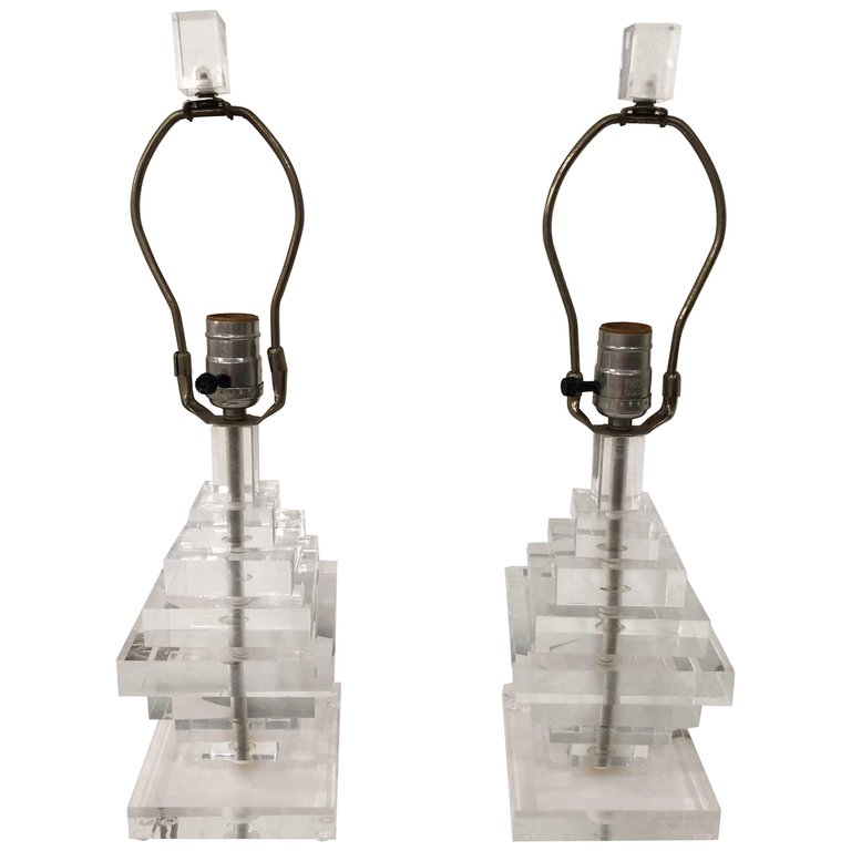 SOLD Pair of Vintage Lucite Table Lamps Geometric Stacked