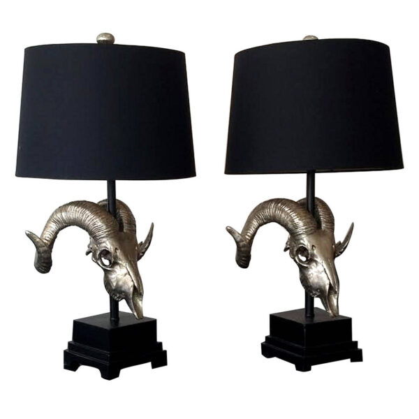 SOLD Pair Silver Gilt Rams Skull Table Lamps