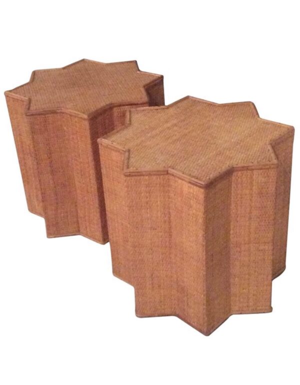 SOLD Pair Woven Rattan Wicker Bamboo Star End Side Coffee Tables Vintage Tropical