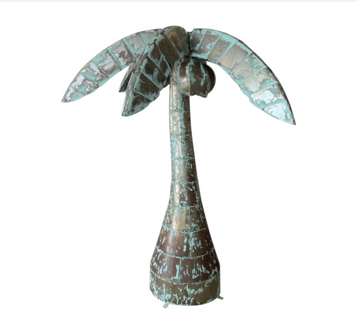 SOLD Vintage Monumental Metal Palm Tree Leaves & Coconuts Large Statue Tropical