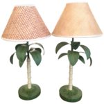 SOLD Palm Beach Breakers Tree Leaf Frond Metal Tole Table Lamps, Pair Tropical Palm Beach