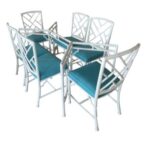 SOLD Faux Bamboo Metal 7 Pc Patio Dining Table & Chairs Upholstered & Powder-Coated