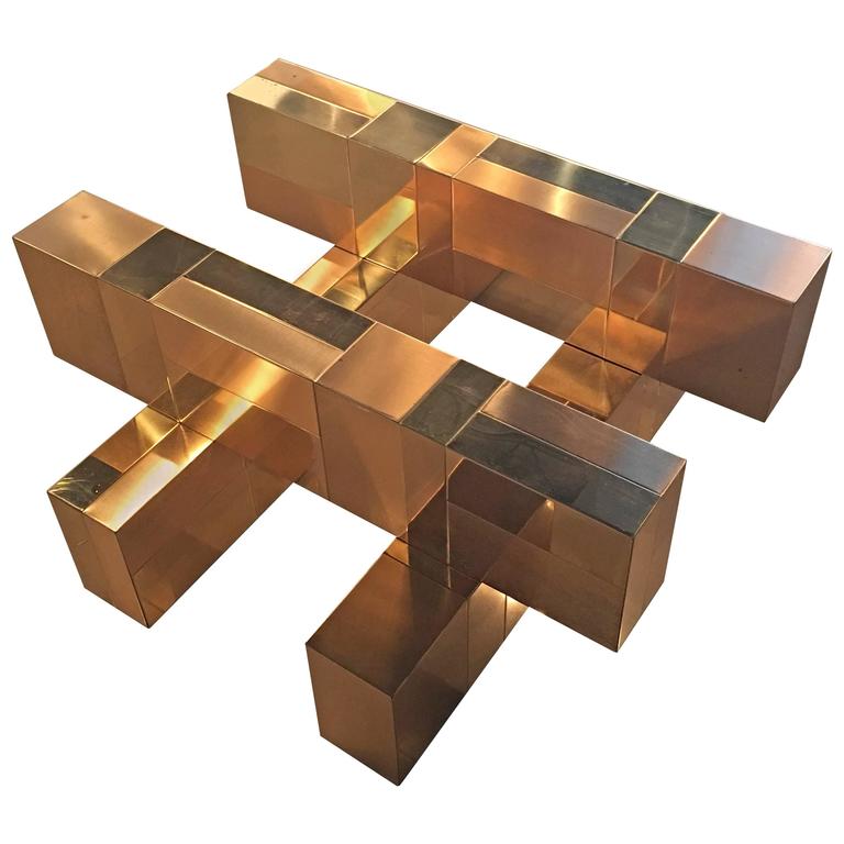 Paul Evans Cityscape coffee cocktail table, gold brass patchwork. There is some minor patina on bottom (pictured) and a scratch (pictured). Overall good vintage condition. Base only no glass.