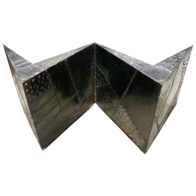 Vintage Paul Evans for Directional PE-11 coffee table signed PE70 (pictured). Sculpted steel, copper, brass, bronze patchwork zig zag.