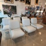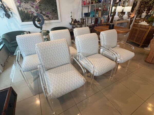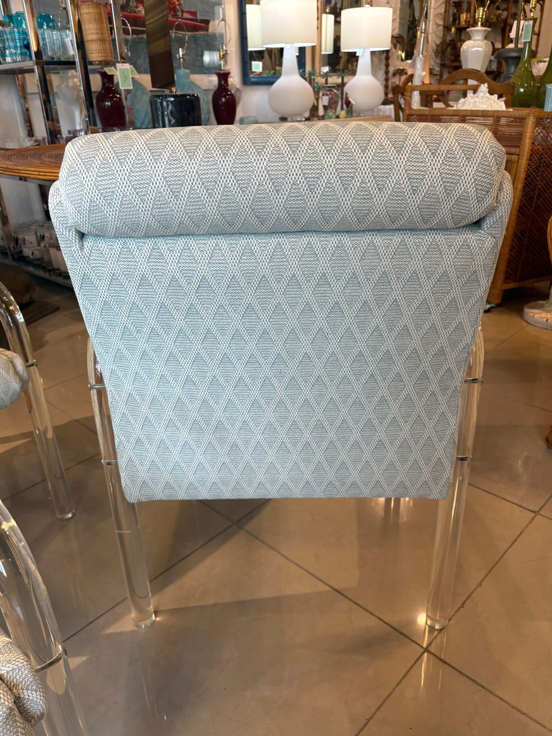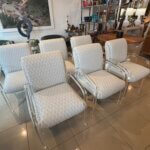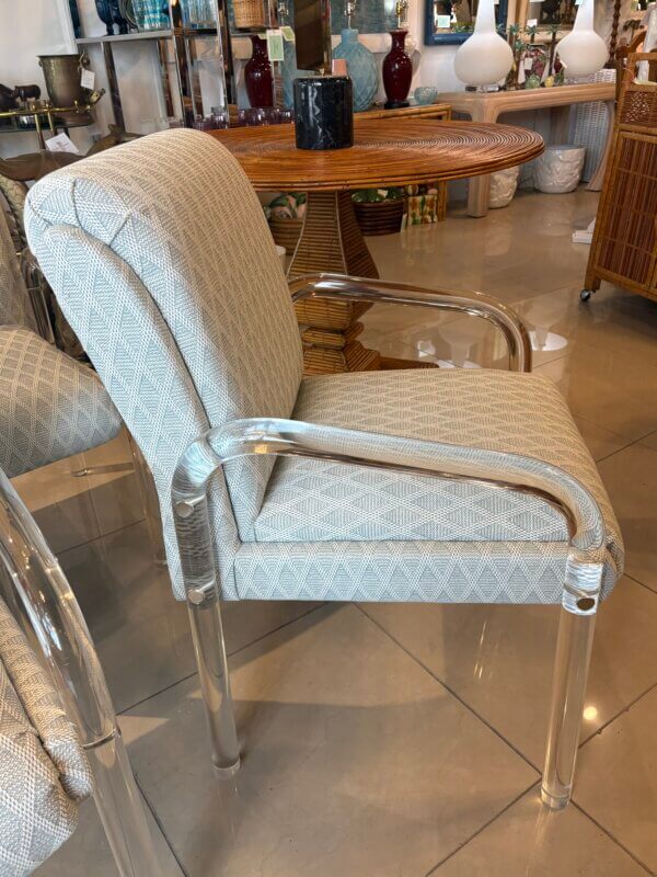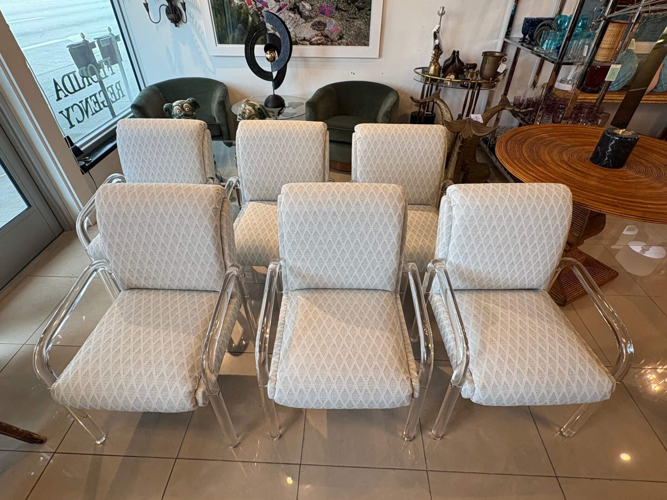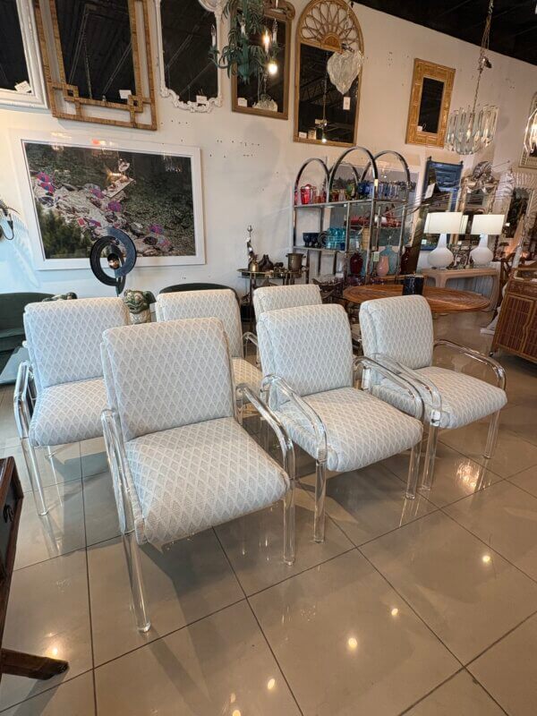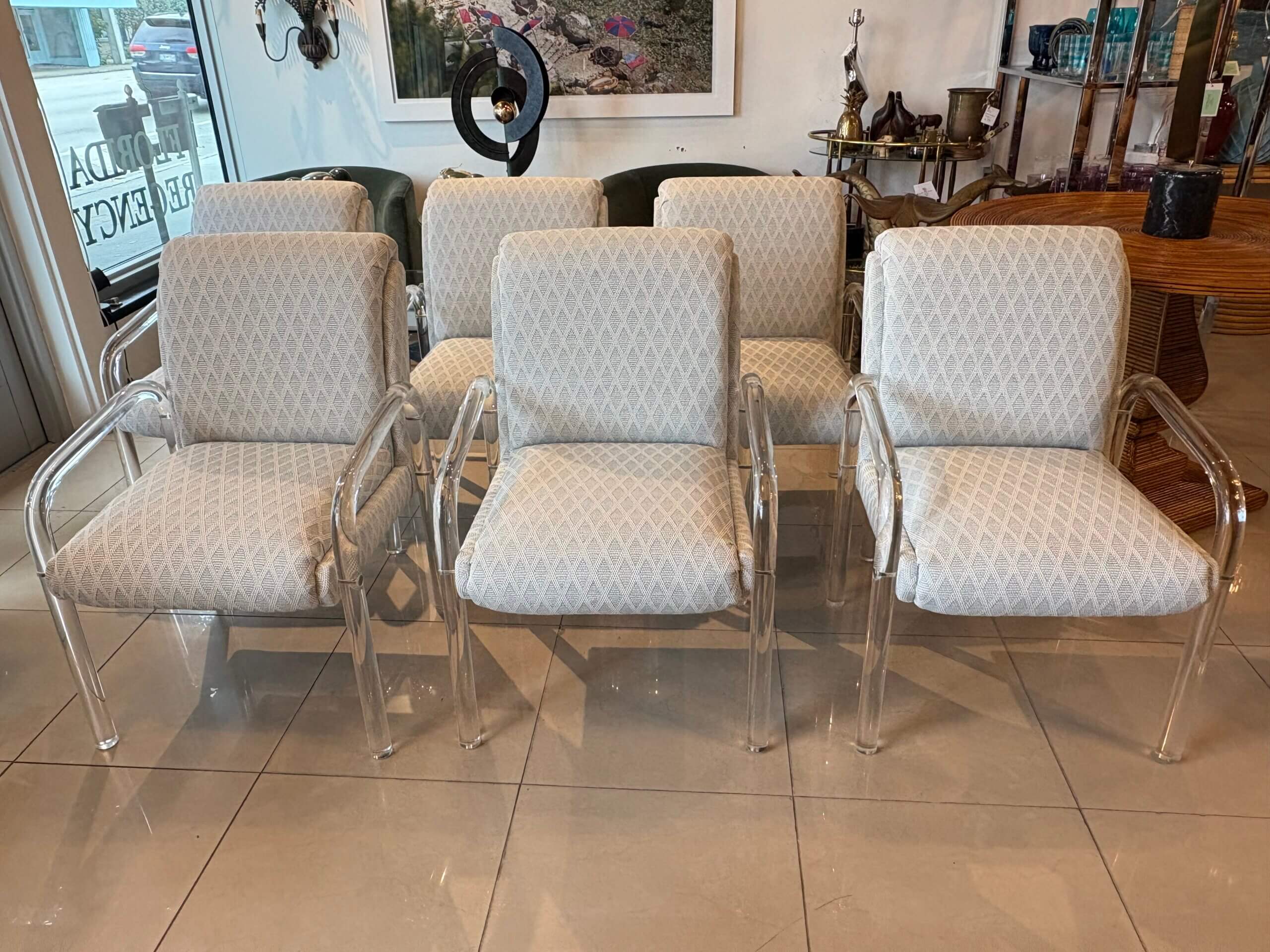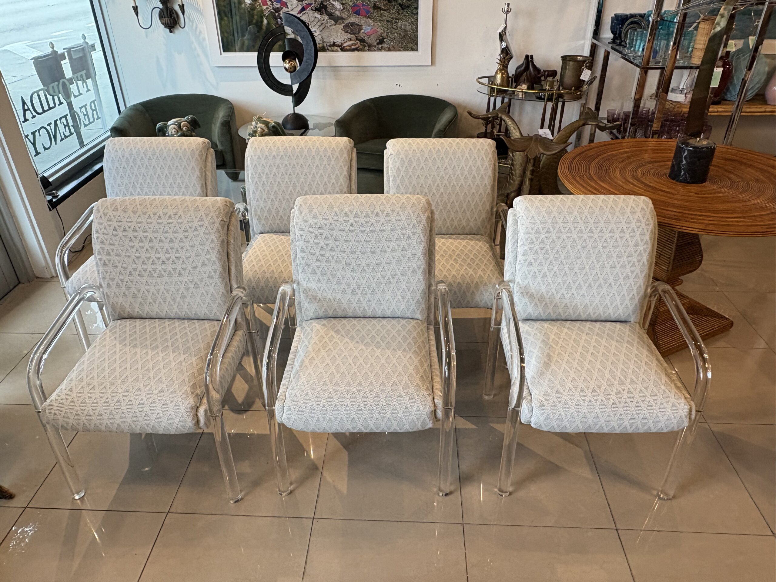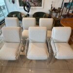 SOLD Vintage Set of 6 Lucite Arm Dining Chairs by Preview Newly Upholstered Coastal