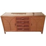 SOLD Rattan Woven Wicker Vintage Credenza Buffet Dresser Palm Beach Tropical