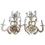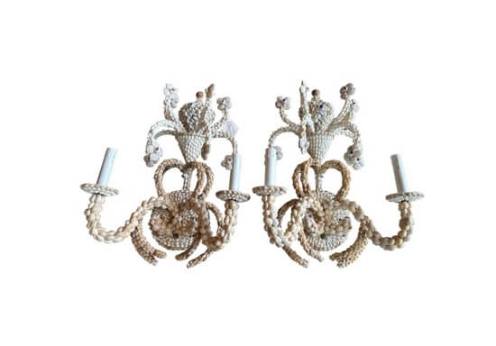 SOLD Vintage Palm Beach Pair of Seashell Shell Encrusted Sconce Wall Lights