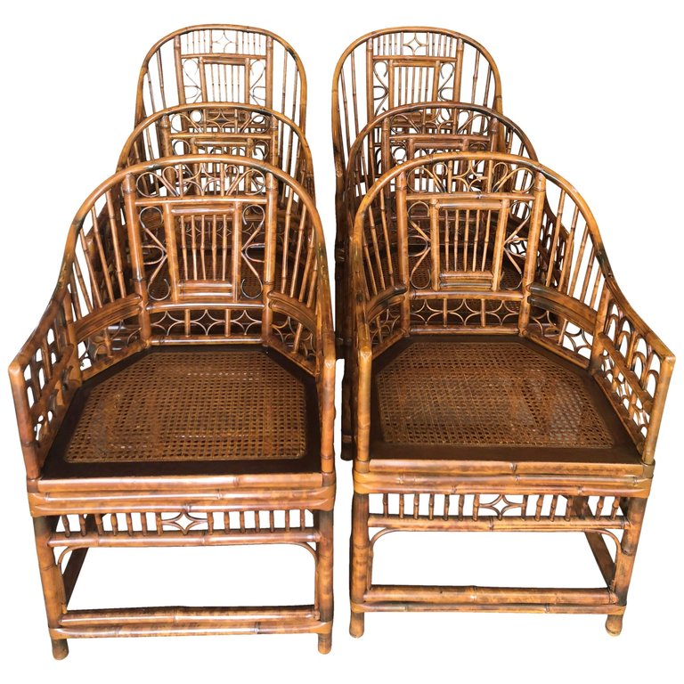 SOLD Set of Six Brighton Style Bamboo Arm Dining Chairs