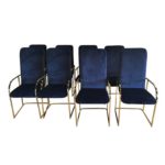 SOLD Set of 12 Brass Dining Arm Chairs DIA Navy Velvet Design Institute of America