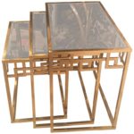 SOLD Set of Three Brass Greek Key Italian Nesting Tables, Italian End Side Glass