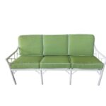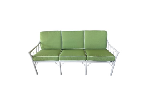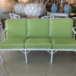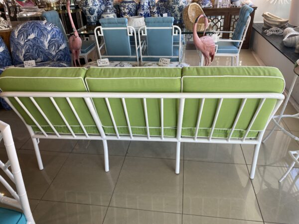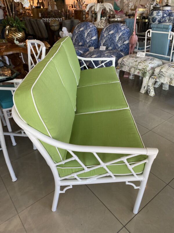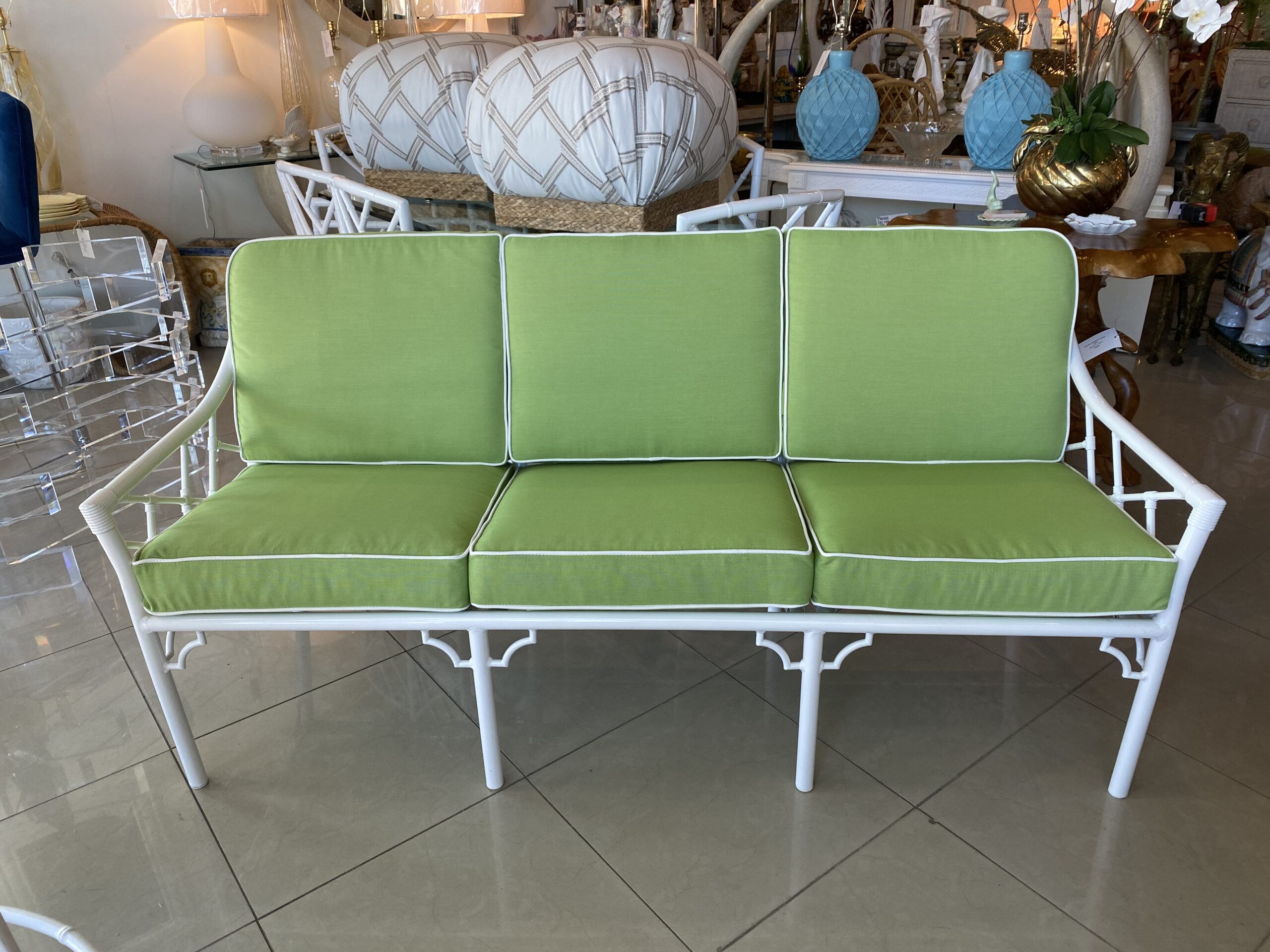 SOLD Vintage Metal Newly Powder-Coated Patio Sofa Faux Bamboo Chippendale Upholstered Sunbrella