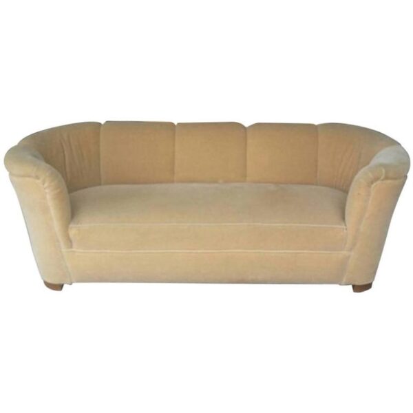 SOLD Sofa Curved Mohair Vintage Style of Ward Bennett Mid-Century Modern Channel Back