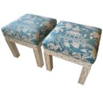 SOLD Vintage Pair of Lacquered Fretwork Fret Upholstered Chinoiserie Benches Stools