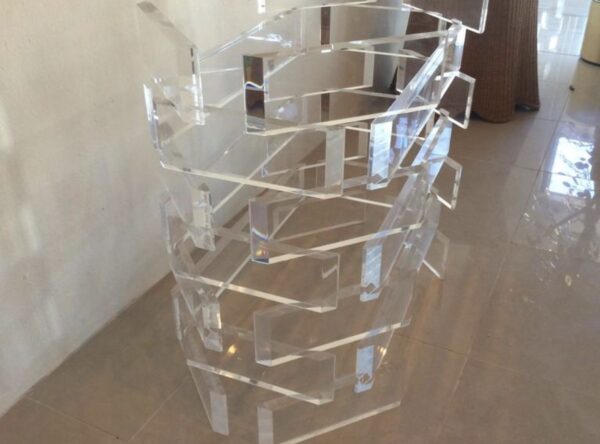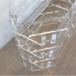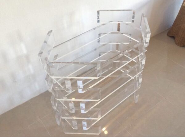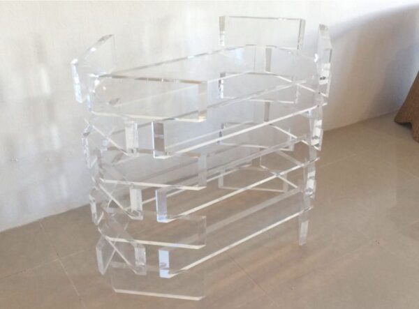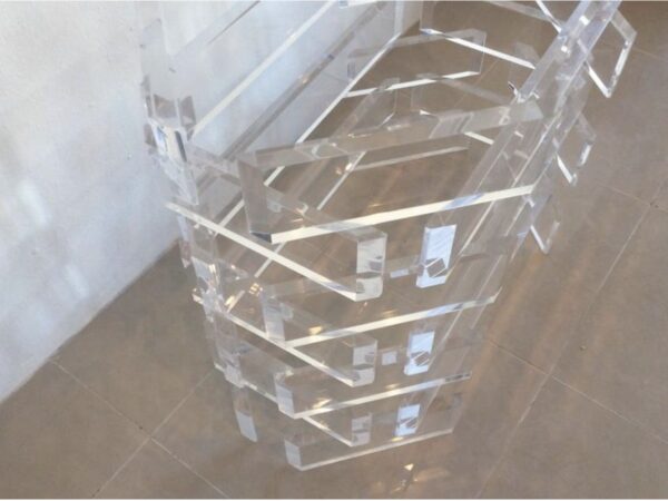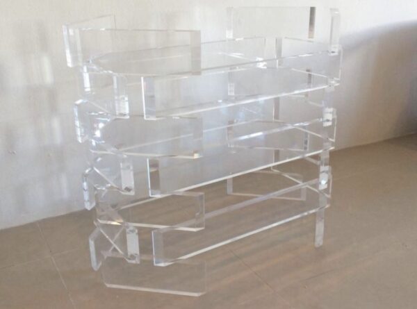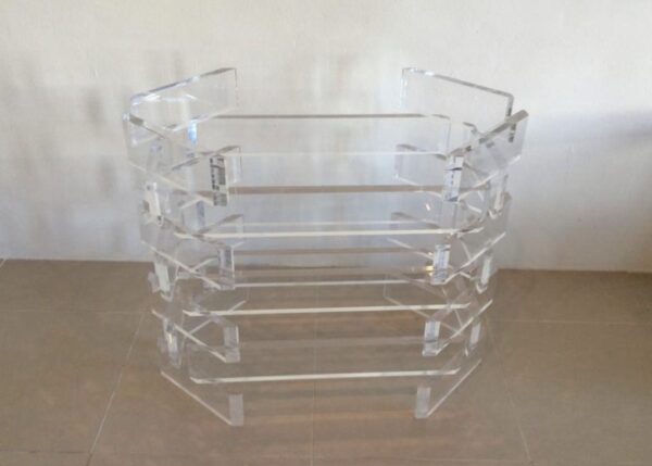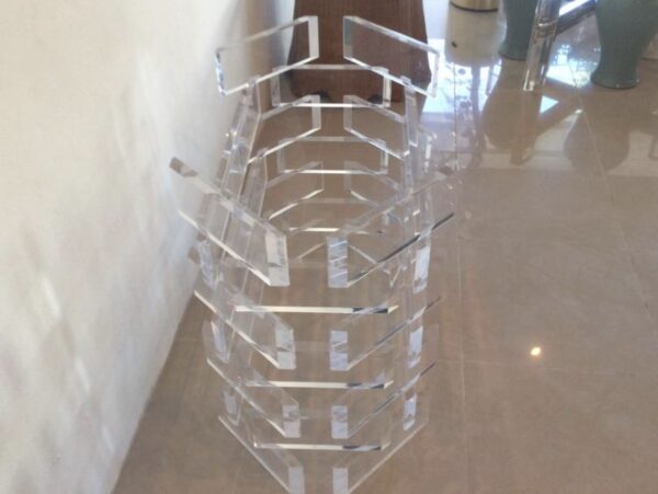 Stacked Brick Lucite dining table base or desk. In nice as found vintage condition. Does not include glass top.
