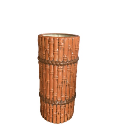 SOLD Vintage Burnt Orange Ceramic Faux Bamboo Umbrella Stand