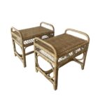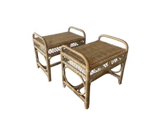 SOLD Vintage Pair of Wicker Rattan Benches End of Bed Stools