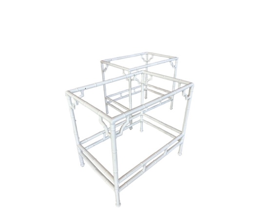 Tags: End side tables, faux bamboo, glass shelves, Metal, outdoor, pair, patio, White